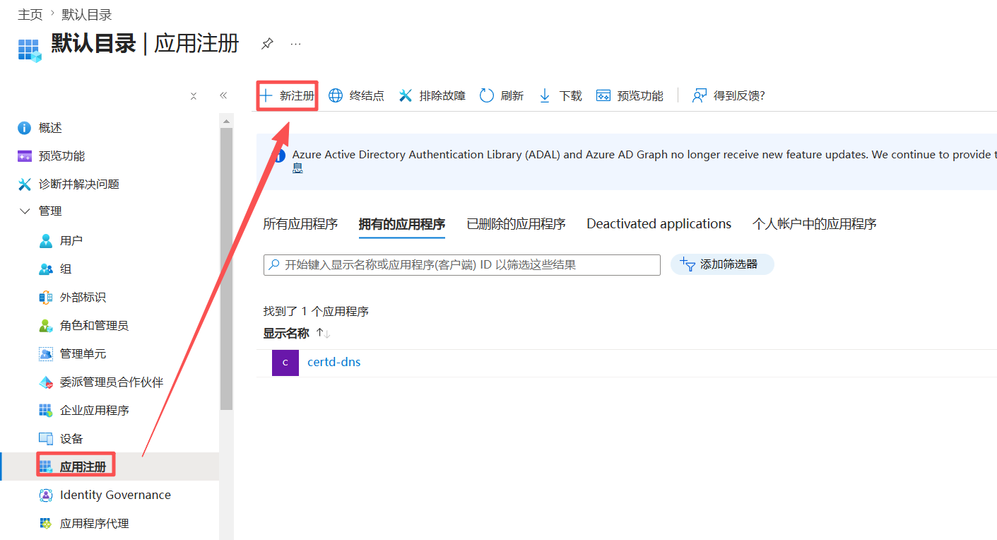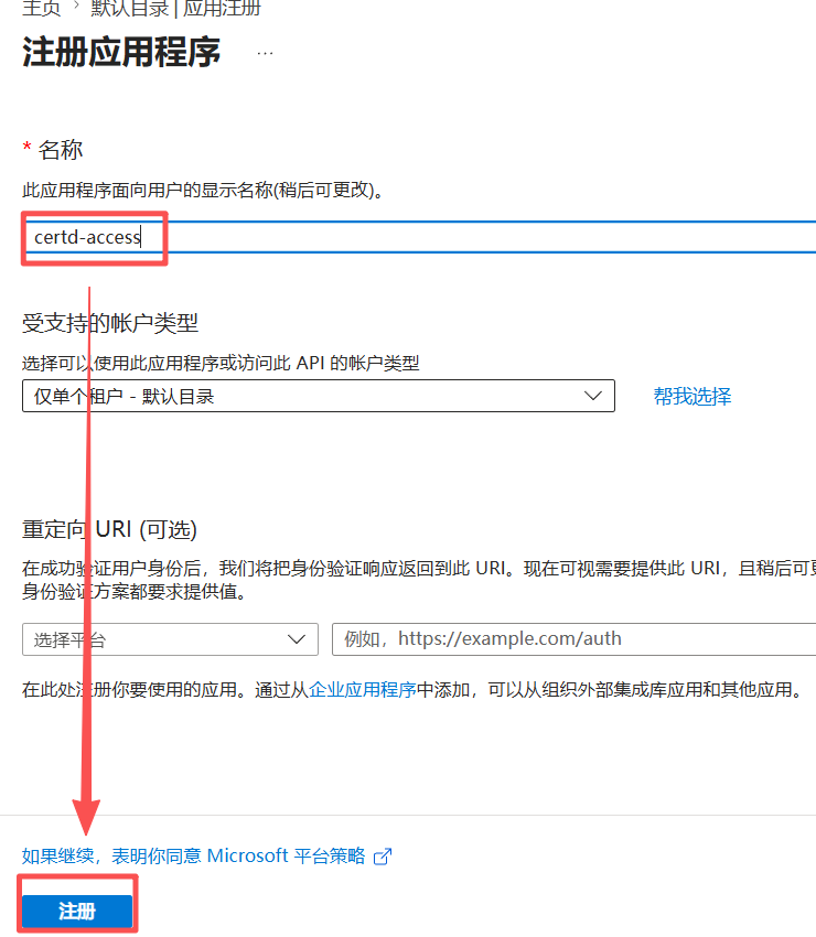 创建一个应用程序 Microsoft Entra ID - 》 应用注册 - 》 新注册